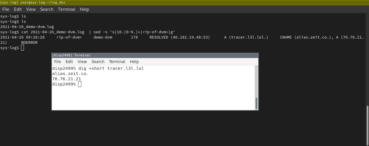 iptables -A PR-QBS -t nat -d 10.139.1.2/32 -p tcp --dport 53 -j DNAT --to <ip-of-sys-log>:5353